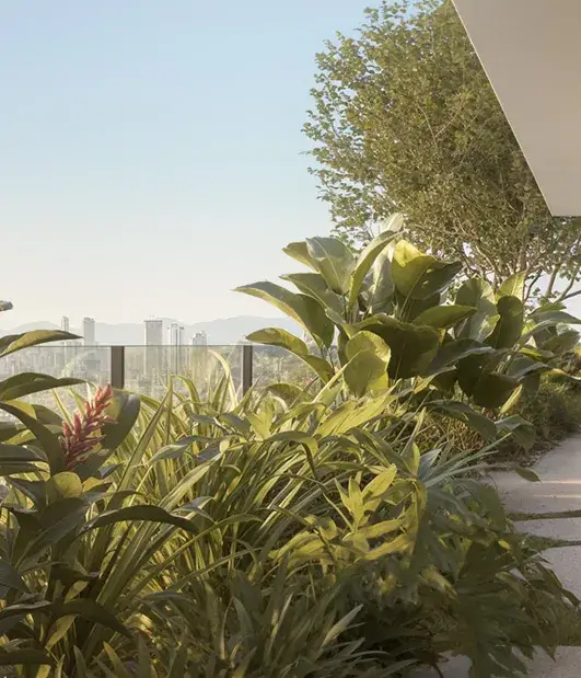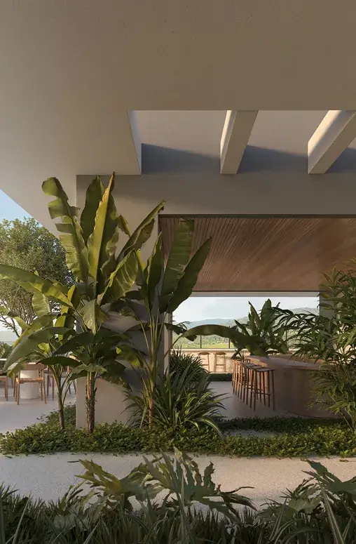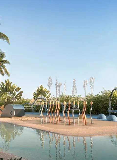 O paisagismo do Isla conecta percursos, praças e jardins tropicais que equilibram contemplação e vitalidade. A Praça das Águas, o aqua play e o rooftop são destaques que unem lazer, frescor e experiência.